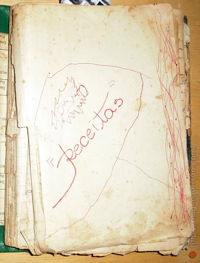 Ou não: achei outro caderno (menor) e um maço de receitas anotados em papéis. Lá vou eu continuar a empreitada rumo ao completismo, e ainda no espírito das postagens iniciais: "