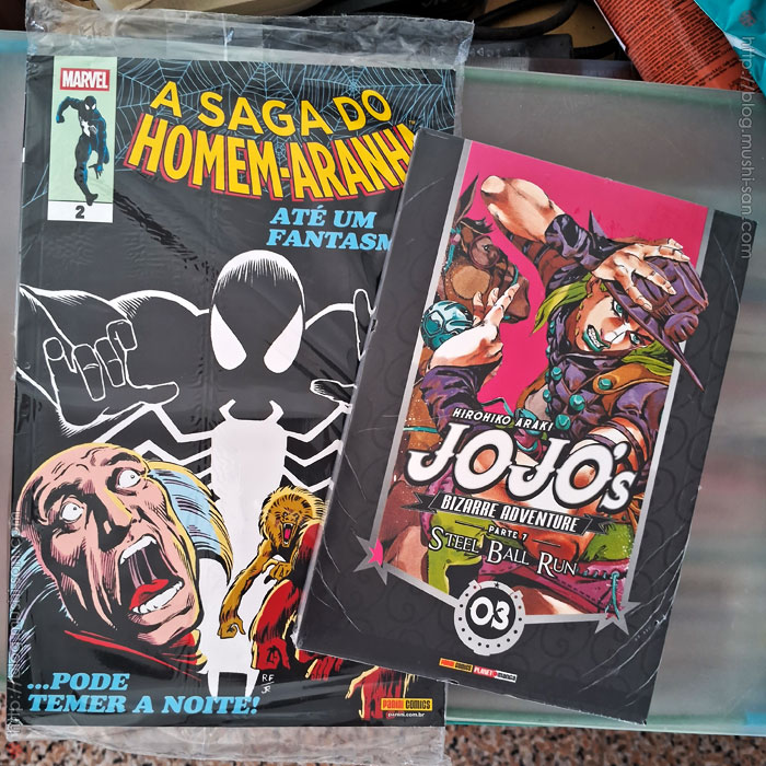 Jojo's Bizarre Adventures (Steel Ball Run) #3: Série que dizem ser enorme, engraçada, com 1000 recomendações também. Ok, estante é que nem coração de mãe.... (
