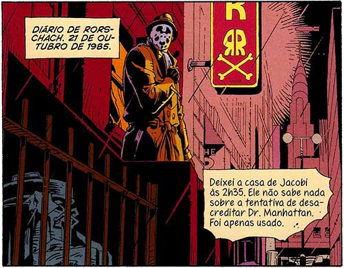 Deixei a casa de Jacobi às 2h35. Ele não sabe nada sobre a tentativa de desacreditar Dr. Manhattan.
