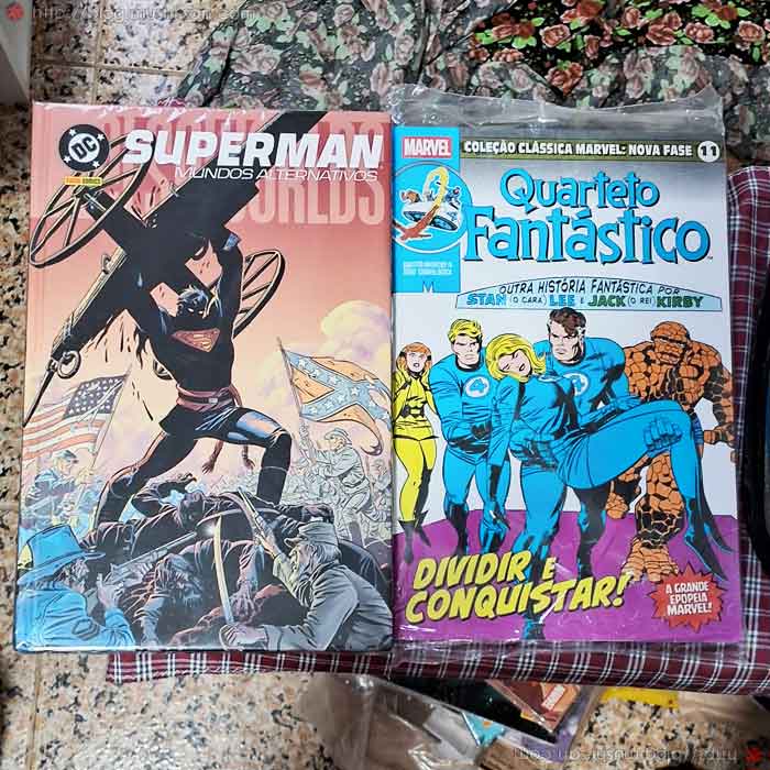 Superman - Mundos Alternativos: Os famosos Elseworlds. Lá, se não me falha, tiveram 2 encadernados do Azulão e 3 da Morcega, e acho que da Liga também. Se sairem aqui e ependendo do conteúdo e faniquito, pego alguns desses.