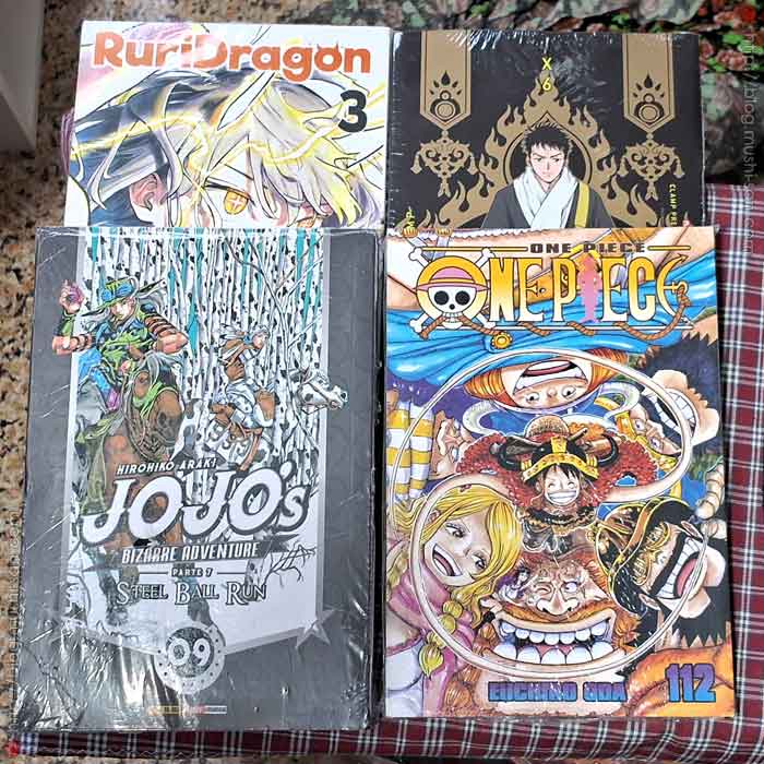 Jojo's Bizarre Adventures (Steel Ball Run) #10: Série que dizem ser enorme, engraçada, com 1000 recomendações também. Ok, estante é que nem coração de mãe.... (